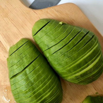步骤6、将低脂芝士片铺到吐司片上,然后依次放番茄片,煎鸡蛋,牛油果,盖上吐司片!