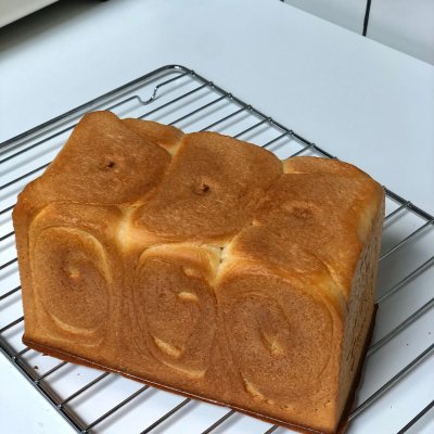 步骤5、全麦吐司切开两片,放面包机叮好,没有面包机可以用不粘锅两面翻面烤。